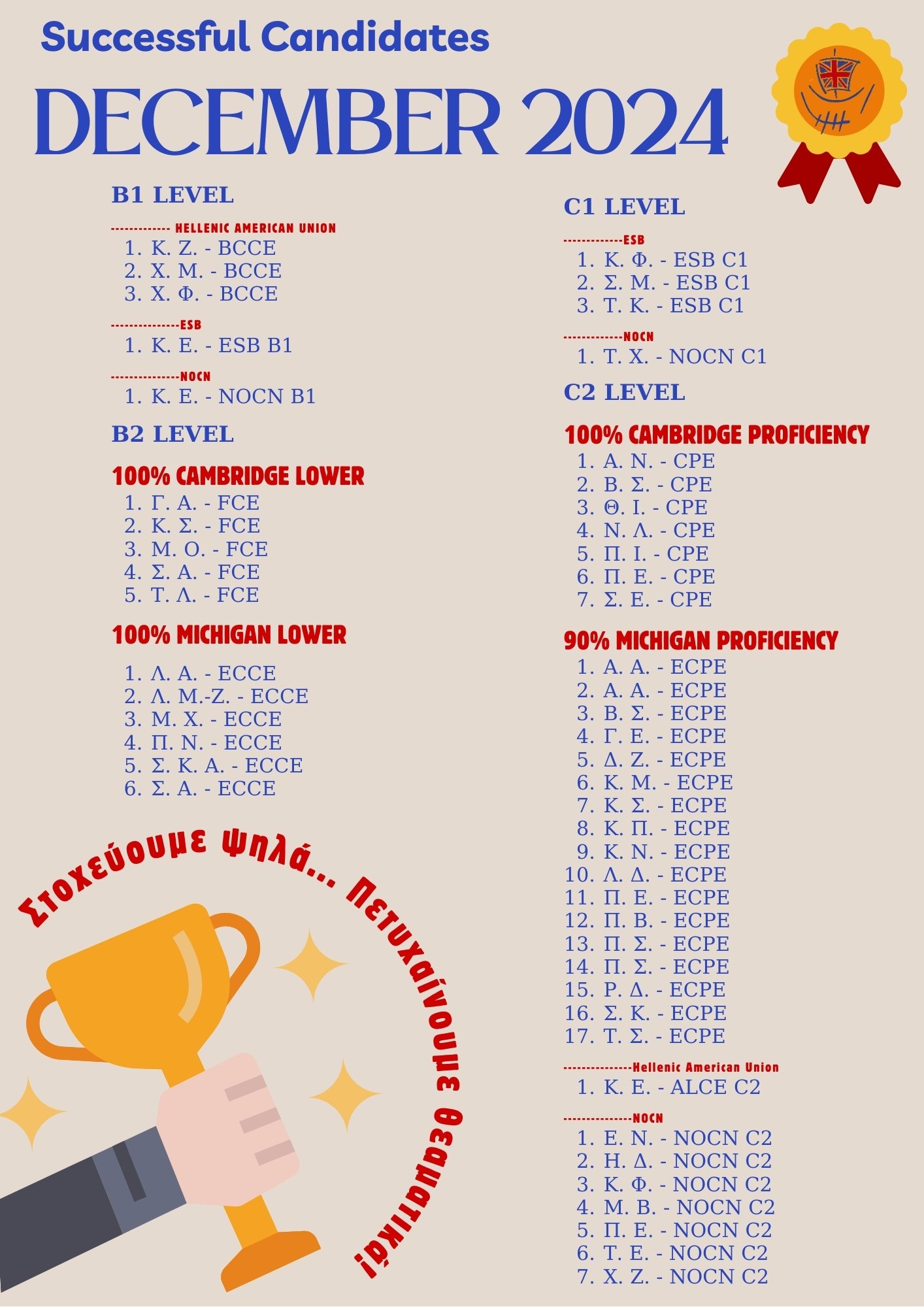 21 – 02 – 2025 Επιτυχόντες Δεκεμβρίου 2024